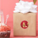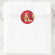 Adesivo mostrado com uma impressão artística de cervo de Natal festivo na floresta. Tamanho pequeno mostrado Cores vermelho e dourado