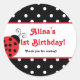 Adesivos de festa com pontinhos de joaninha vermelha. Personalize com qualquer texto.