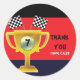 Adesivos de Festa de Aniversário de Troféu e Bandeiras de Corrida de Carros. Adicione seu próprio texto personalizado ou deixe em branco.