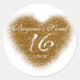 Adesivos de festa de coração Sweet 16 com glitter dourado. Personalize com qualquer texto. Itens correspondentes disponíveis.