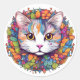Gato branco bonito com olhos verdes grandes e palitos. Vinhetas com um gato lindo cercado de folhas coloridas, Excelente, bonitinhos de gato para todas as suas necessidades de Crafty. Uso para comemoração, amizade ou rascunho.