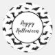 Adesivo redondo grande é mostrado em uma impressão de morcegos de Halloween.