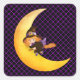Adesivo quadrado pequeno mostrado em uma estampa de uma pequena bruxa de Halloween fofa.