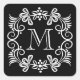Um adesivo de monograma elegante. O selo monogramado elegante tem um padrão de guirlanda de espirais florais brancas em torno do inicial do monograma personalizado para dar aos seus adesivos um visual único e chique.