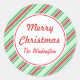 Listras de hortelã das festas de fim de ano decoram estes adesivos festivos de Feliz Natal. Altere o texto para personalizar estes adesivos em estilo retrô. Use estes adesivos de hortelã-pimenta para presentes, etiquetas de presente, sacolas de presente, pacotes, envelopes, panificação, cozinha, troca de biscoitos, Natal, etc.... O design é de arte original.