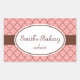Um padrão cor-de-rosa e marrom-chocolate enfeita esses adesivos elegantes. Use estes adesivos para panificação, assar, produtos assados, negócios, produtos, boutique, cozinha, comidas, sacos para presentes, caixas, etc...O design é da arte original.