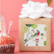 Vinheta de Natal mostrada com um partucho festivo em um impressão de árvore de pera. A cor de fundo é prata clara. Personalizar ou comprar como está.