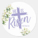 O adesivo é mostrado em uma impressão de Páscoa Ele Ressuscitou.
