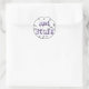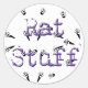 Um adesivo com 'Rat Stuff' em fundo de impressão roxo e de pata de rato.