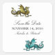 Perfeito para anunciar um elegante casamento temático de jogo de mesa de fantasia, são estes adesivos de salvamento de data do dragão nerds e únicos, apresentando um dragão dourado vibrante e um dragão turquesa. Fácil de personalizar, basta adicionar os detalhes do seu casamento nos campos de texto fornecidos. Clique em "Personalize" para encontrar mais opções de personalização.