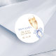Adicione um acabamento elegante aos seus brindes ou envelopes com esses adesivos elegantes com uma taça de champanhe dourada e um laço azul poeirento.