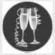Adesivos de taças de champanhe branco prateado e preto elegantes e serpentinas de confete.