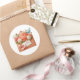 O adesivo é mostrado em uma linda impressão artística de buquê floral.