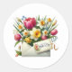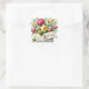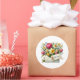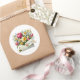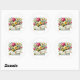 O adesivo é mostrado em uma linda impressão artística de buquê floral.