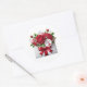 O adesivo é mostrado em uma linda impressão artística de buquê floral.