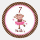 Adesivos do mês do bebê com macaco bailarino fofo em fundo de bolinhas branco e marrom