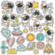 Adesivos espaciais divertidos de astronauta de desenho animado, foguetes, planetas e OVNI.