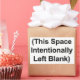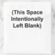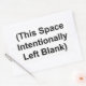 Uma folha de quatro adesivos, de 4,5 polegadas de largura x 2,7 polegadas de altura, com as palavras "Este Vazio de Espaço Intencionalmente Esquerdo" entre parênteses.