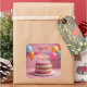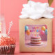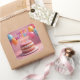 Um bolo de aniversário com velas tremeluzentes, balões coloridos, confetes e um letreiro de FELIZ ANIVERSÁRIO cobre este adesivo de festa.