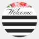 Um conjunto de adesivos florais e listrados "Bem-vindos", perfeito para o pacote de presentes dos hóspedes.