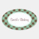 Um padrão de gingham verde e marrom-chocolate decora esses adesivos personalizados da cozinha. Personalize o texto de acordo com as suas necessidades. Use estes adesivos para uma padaria, empresa, cozinha, recipientes de comida, sacos para presentes, caixas, artesanatos, etc... O design é de arte original.