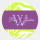 Adesivos de casamento monograma zebra lima (selantes de envelope), tons de acento roxo. Ótimo para uso diário. Totalmente personalizável. Fontes e cores de fundo podem ser facilmente alteradas. Copyright © 2009 PixDezines.com e PixDezines no zazzle.com