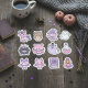 Decore suas coisas com esta adorável folha de ilustrações de Halloween em tons de rosa e roxo. Esta coleção destaca criaturas divertidas como um gatinho unicórnio rosa, uma coruja marrom doce e um fantasma branco acenando. Você também encontrará um diabinho rosa usando um chapéu de bruxa, um espírito roxo com um olho só segurando uma pequena lanterna, uma raposa rosa com asas de morcego e morcegos rosa e roxo amigáveis. O conjunto é finalizado com objetos mágicos como um caldeirão de coração borbulhante, uma garrafa de poção rosa redonda, um livro de feitiços roxo e uma pilha colorida de abóboras sorridentes. As cores pastel brilhantes e rostos alegres trazem um clima completamente suave e divertido para os seus temas de temporada assustadora favoritos.