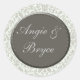 Prata e autocolantes brancos com estampas com noiva e nome de noivo. Mude facilmente para os seus próprios nomes nesta design.