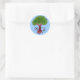 A árvore colorida e resistente na ilustração da aquarela neste adesivo tem uma mensagem simples. Sob a cobertura verde-brilhante da árvore, um símbolo de paz é esculpido no seu tronco de cor fusca. Em roxo profundo, a inscrição angustiada atrás da árvore é a palavra "paz" com a parte mais larga do tronco da árvore representando o "a". Este texto e a cor de fundo atrás do design podem ser facilmente alterados para se adequarem aos seus próprios gostos. Da minha imagem original criada digitalmente.