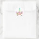 Este adesivo bonito apresenta uma face de unicórnio sorridente com horn arco-íris e flores cor-de-água rosa.