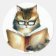 Adesivos Redondos de Gato Lendo um Livro