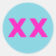 Adesivos Redondos Personalizados de Despedida XX são adesivos de estilo contemporâneo impressos por designers que podem ser personalizados. Este design apresenta "XX" em um fundo moderno que pode ser editado e alterado ao seu gosto. O X X é um gesto de e-mail de despedida moderno, as letras são equivalentes a emojis sorridentes e são uma maneira moderna e fofa de dizer adeus.