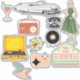 Divertido sortido de médio-século/retrô/adesivos para raspões e artesanatos, laptop, bagagem e muito mais. Incluído: "dona de casa", rádio, telefone, carro, cocktail, giro e gravador, sinal de restaurante e designs atômicos