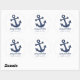 Adesivo de âncora náutica personalizado com duas linhas, nomes e data do casamento.