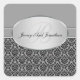 Os adesivos de casamento quadrados monogramas que você pode personalizar com cinzas pretas agradáveis e combinação de cor prateada e o local onde você pode adicionar seu nome ou iniciais. Esta design faz parte da Coleção de Casamentos do Monograma.