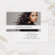 Cartões de visita personalizados modernos e brancos com foto, com seu nome na frente e nome, título e informações de contato no verso. Você pode alterar as cores do plano de fundo e da fonte, mover e redimensionar elementos com a ferramenta de design.