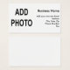 Cartão de visita Cartão de visita. Adicione seu logotipo ou foto quando substituir a imagem "Adicionar foto" pela sua. Adicione suas informações de negócios e endereço. A parte traseira da placa fica vazio para sua tomada de nota. Edite este cartão para adicionar texto extra ao verso.