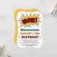 ZOWIE! Nosso convite super legal ao estilo de banda desenhada é uma maneira brilhante e divertida de convidar os convidados festas de aniversário de seu filho. Inscrição 3D de super-herói em pop de ouro amarelo, vermelho, azul e preto em fundo branco. Adicionar o nome e a idade do seu filho garante um convite único que você não verá em outro lugar. Escolhemos a cor #F5CA4B amarelo para o verso, mas você pode "personalizar" para mudar a cor do verso, se desejar. Experimente o #57AAD8 azul ou #AE0407 vermelho. Veja mais convites para crianças e cartões de saudação no Zigglets aqui no Zazzle.