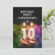 Adicione um nome para personalizar este convite de festas único.Um divertido 10º convite de aniversário com números de velas felizes queimando em um cupcake de chocolate. Veja toda a gama de convites e cartões na minha loja.