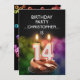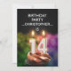 Adicione um nome para personalizar este convite de festas único.Um convite de aniversário 14 divertido com números de velas felizes queimando em um cupcake de chocolate. Veja toda a gama de convites e cartões na minha loja.
