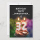 Adicione um nome para personalizar este convite de festas único.Um divertido 32º convite de aniversário com números de velas felizes queimando em um cupcake de chocolate. Veja toda a gama de convites e cartões na minha loja.