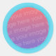 Pintura de um círculo azul para que você adicione uma foto aos autocolantes. Divertido modo colorido de compartilhar fotos. Excelente para anúncios de bebês e fotos a serem adicionadas aos livros autografados.