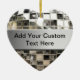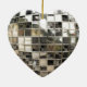 O design bling abstrato da forma bonita do coração da prata do mosaico com um olhar brilhante do mirrorball do partido de disco em ambos os lados faz um ornamento do feriado festivo e grande do Natal, do Hanukkah, ou do ano novo, um favor ou um presente! Excelente para miúdos, adolescentes, homens e mulheres de todas as idades! Agora você pode facilmente adicionar todo o texto feito sob encomenda na placa de prata do olhar para personalizar nomes, datas, a ocasião especial, etc.