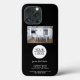 Elegante Adicione seu logotipo com capas de iphone pretas de fotos da empresa de texto personalizado. Adicione seu logotipo, foto e personalize o texto, o nome da empresa, o endereço e as informações de contato.