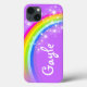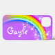 Ajude a proteger o iphone 6 da sua criança contra batidas e acidentes de criança, com este bonito caso do design arco-íris iphone 6. Personalize com seu próprio nome, nomes perfeitos ou apelidos. Este exemplo diz Gayle. Desenvolvido exclusivamente e ilustrado por Sarah Trett.