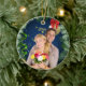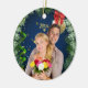 Este Ornamento Personalizado de Natal do Casal é a forma perfeita de comemorar todos os anos. Esta apresenta um belo fundo natalício de um céu azul da meia-noite com estrelas emolduradas pelo pínus boughs, um ornamento ouro com um grande arco vermelho, e uma fita verde de Natal enrolada. Adicione sua própria foto ou imagem e texto para fazer deste um Enfeites de natal exclusivo que você terá orgulho de exibir em sua árvore. Também faz um belo presente e lembrança familiar.