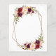 Um design floral vermelho e borrado com um quadro geométrico com texto no meio. Você adiciona o texto, tamanho do texto, cor e fonte neste modelo de convite para casamento.