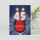 Adicione um nome para personalizar este convite de festas exclusivo. Um divertido 45º convite de aniversário com números de velas felizes queimando em um copo de vinho tinto. Veja toda a gama de convites e cartões na minha loja.
