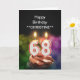 Queimando velas de bolo de aniversário de 68 anos em forma de números em cima de um cupcake de chocolate. Personalizar com o nome da pessoa de aniversário. Adequado para um homem ou uma mulher. Veja toda a gama de cartas para idades e relacionamentos na minha loja. Todos os direitos de autor da trabalho de arte Norma Cornes