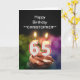 Queimando velas de bolo de aniversário de 65 anos em forma de números sobre um cupcake de chocolate. Personalizar com o nome da pessoa de aniversário. Adequado para um homem ou uma mulher. Veja toda a gama de cartas para idades e relacionamentos na minha loja. Todos os direitos de autor da trabalho de arte Norma Cornes